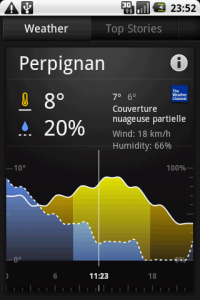 Nouveauté d’Android 2.1, l’application Météo & News, présente sur le Nexus One.