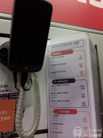 Il nous semble que c’est la première fois que l’on voit un Nexus One en magasin en Suisse qui plus est dans une grande enseigne.