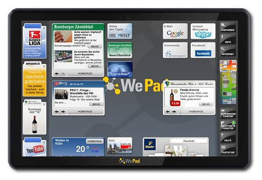 Ecran 11.6? en 1366 x 768 et chipset Intel Atom N450 avec GMA 3150 pour 800 grammes, la tablette WePad en a dans le ventre ! `