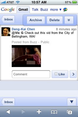 En effet, Google annonce que dorénavant, les Buzz seront pris en compte par le site mobile de GMail sans préciser si les applications mobiles (quel que soit la plate-forme) ne seront mises à jour.