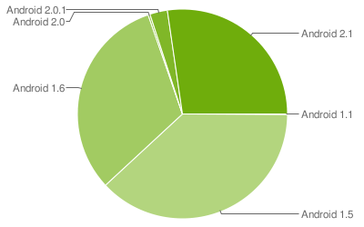 En clair, un tiers d’Android 1.5, un tiers d’Android 1.6 et un tiers d’Android 2.1 les autres versions étant complètement anecdotiques.