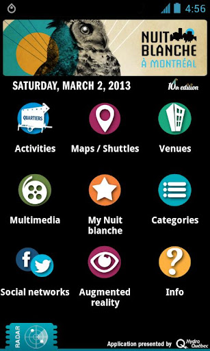 Retrouvez la programmation complète de la 10e édition de la Nuit blanche à Montréal, soit plus de 170 activités réparties dans 3 quartiers et 1 pôle. Cette application présentée par Hydro-Québec offre l’horaire complet, incluant le lieu, la catégorie et la description de chaque activité.En plus d’un nouvel emballage visuel...